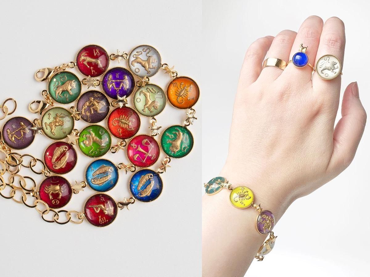 12星座のモチーフが裏彫りで表現されています。古いもののため色の剥げやムラ、ガラス表面の傷やカケが見られます。予めご了承ください。着用画像は色違いです。