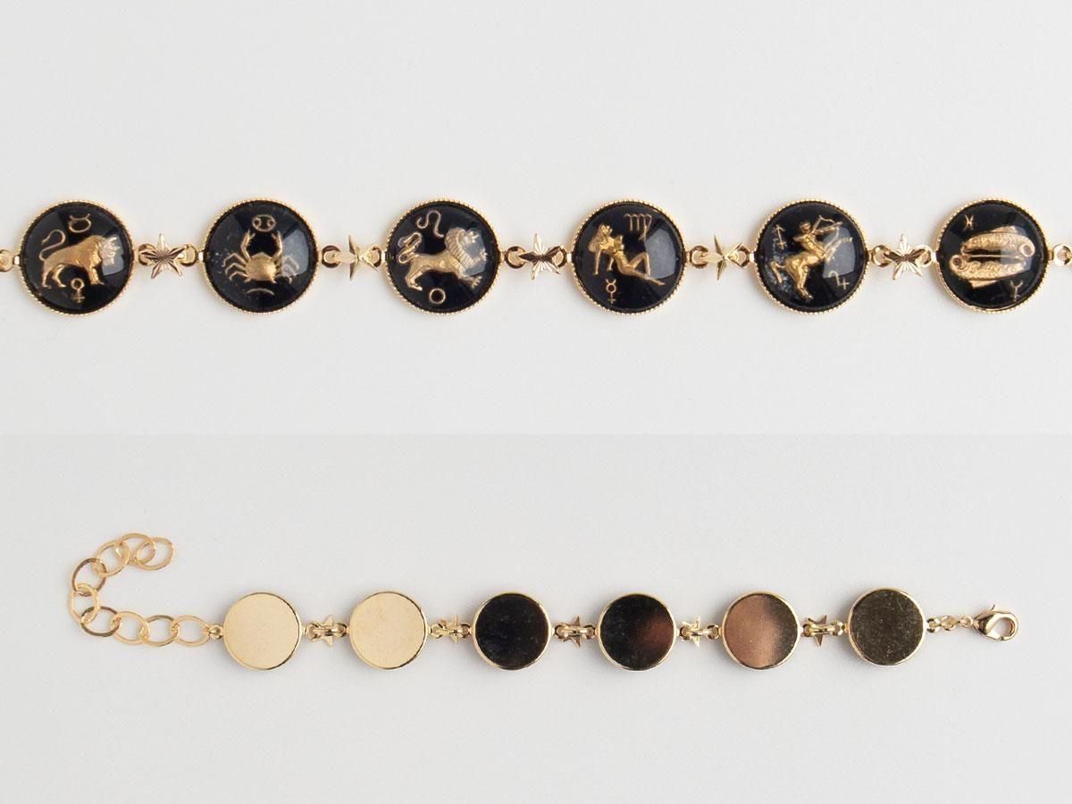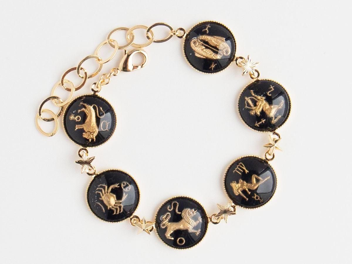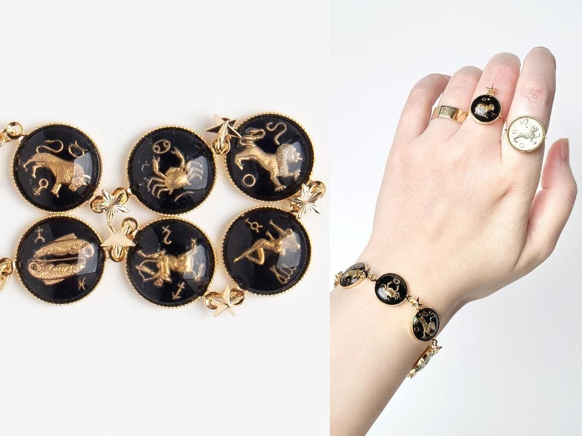 西ドイツヴィンテージのインタリオガラスを星の金具で繋げたブレスレットです。